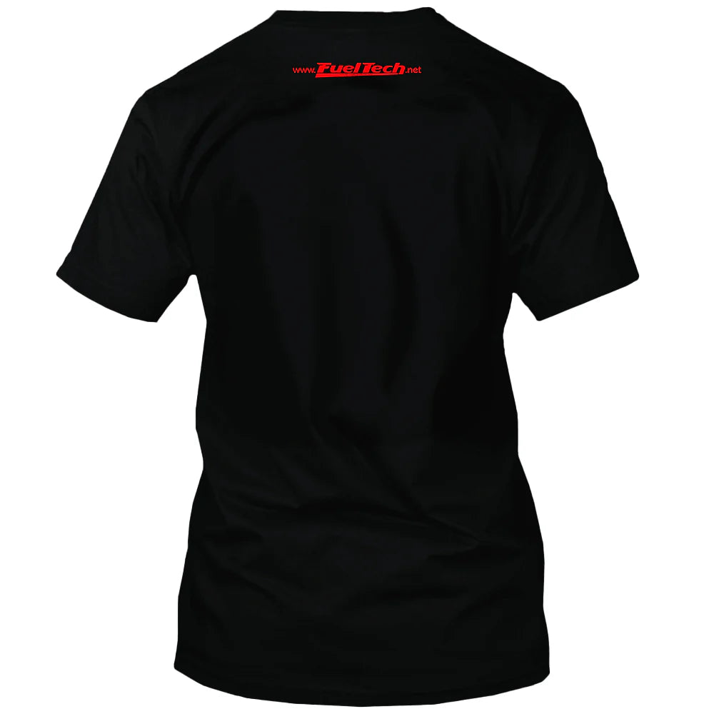 FuelTech Motorsports Black T-Shirt with red FuelTech Motorsports logo on the front and small red FuelTech logo on the back.