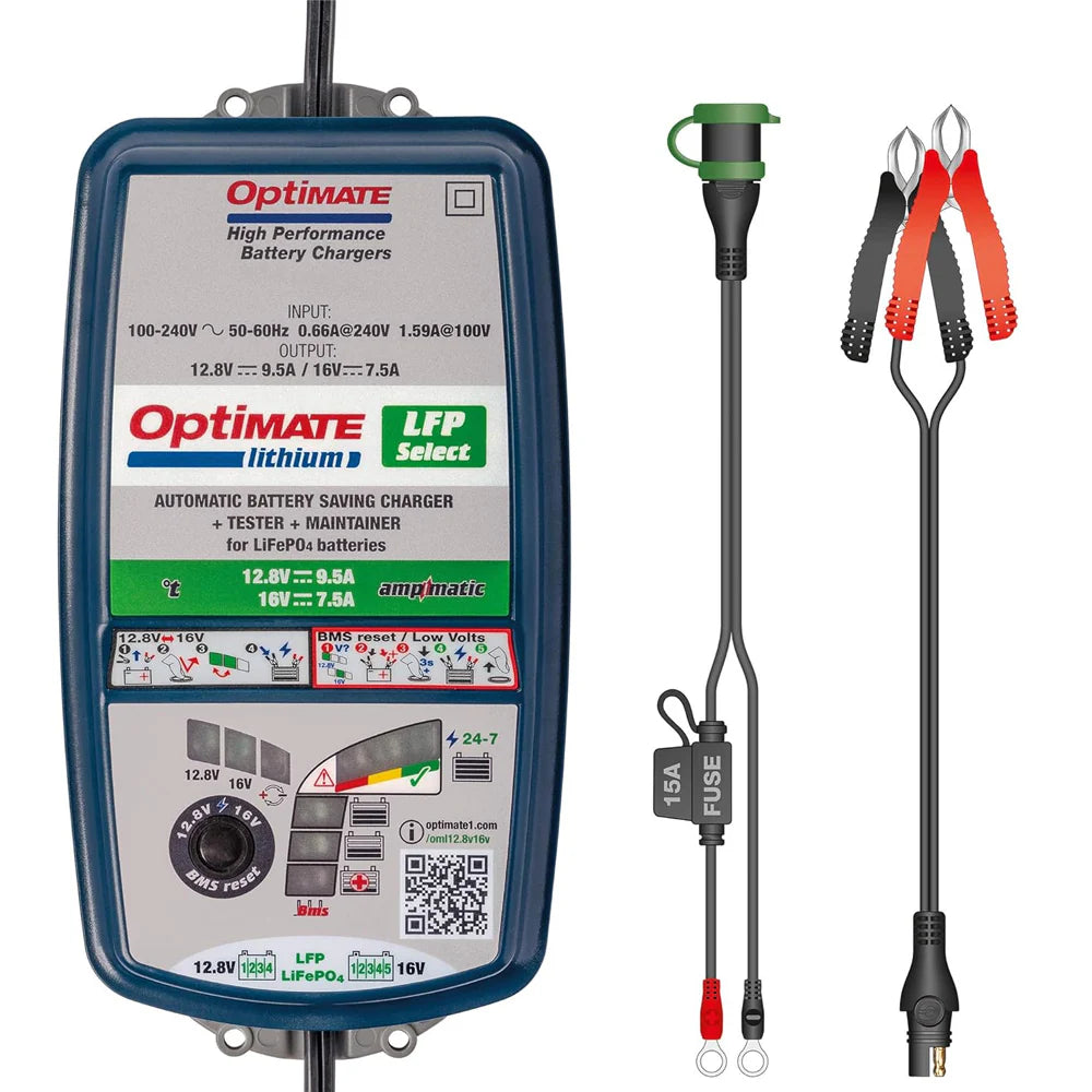 The Optimate Lithium Select is the fastest professional battery charger for the 12.8-13.2V and 16V battery in your high-performance / race motorcycles, cars or craft (4S 9.5A/5S 7.5A). The weatherproof case, indoor/outdoor functionality, and safety features make this the ultimate Lithium charger for the track!